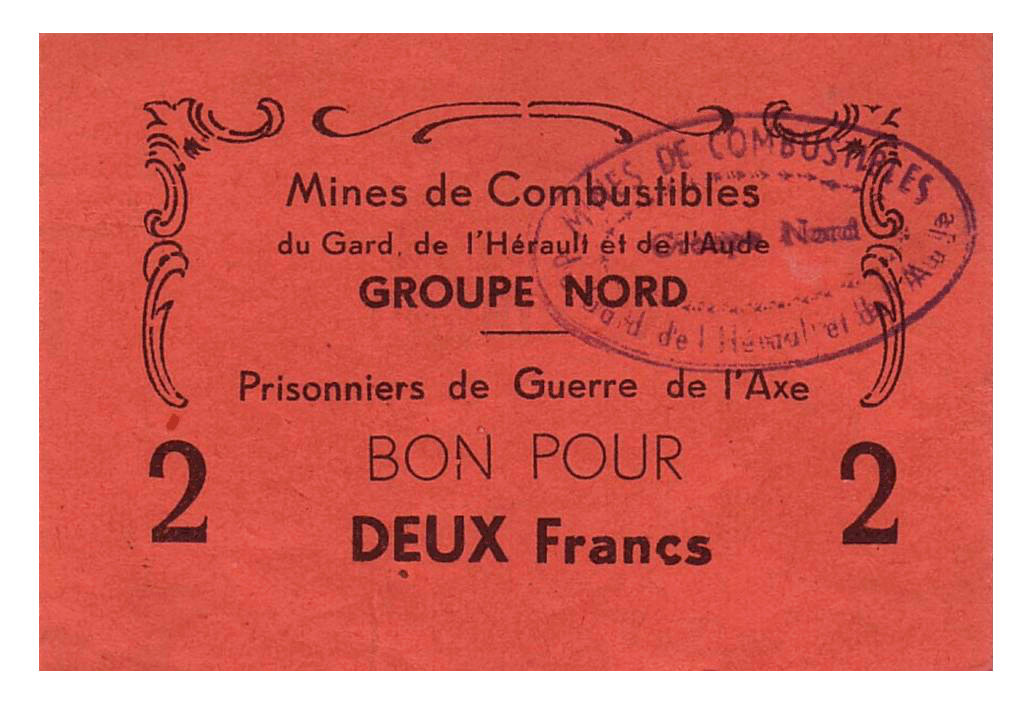 Billet de 2 francs - Mines de combustibles du Gard, de l'Hérault et de l'Aude - Bize minervois
