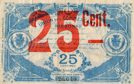 Billet de 25 centimes - Union des commerçants - Narbonne