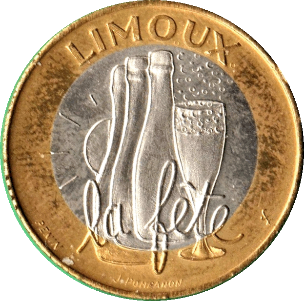 A noter que la légende du revers : « la Blanquette » a dû être remplacée par « la fête » en référence à la Loi Evin relative à la publicité sur les boissons alcoolisées.