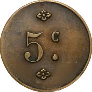 Jeton de 5 c - Commerçants réunis - Ouveillan