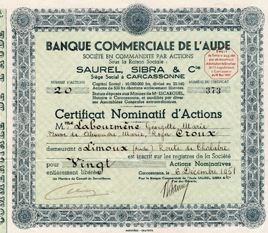 Médaille de la Banque commerciale de l'Aude et du Roussillon - Saurel Sibra & Cie - Carcassonne