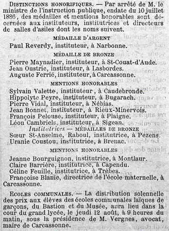 Médaille de l'instruction publique - Pezens