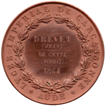 Au départ tenu par les jésuites, l’enseignement supérieur à Carcassonne devient ensuite collège royal, c’est par décret du 10 août 1853 que l’établissement prend le nom de “Lycée Impérial”. Il récompense ses meilleurs élèves par l’attribution de médailles gravées au nom du lauréat.