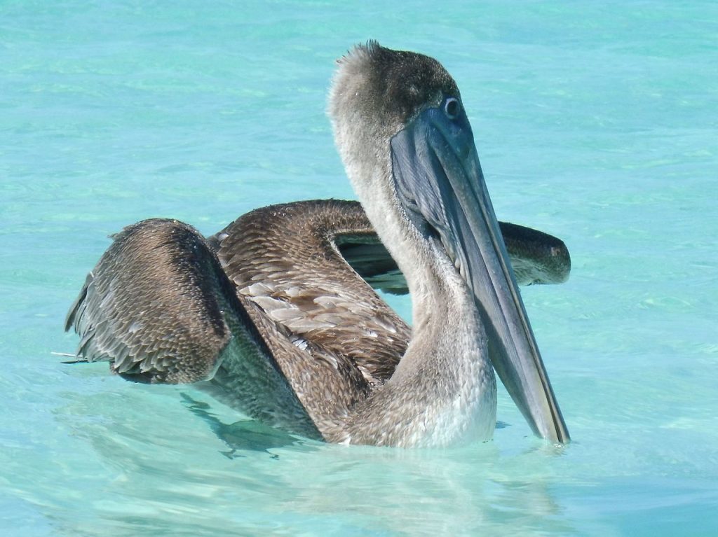 Les pélicans sont de grands oiseaux (de 105 à 350 cm) aquatiques essentiellement piscivores , caractérisés par un grand bec muni d’une volumineuse poche extensible, le sac gulaire qui leur permet d’emmagasiner la nourriture.